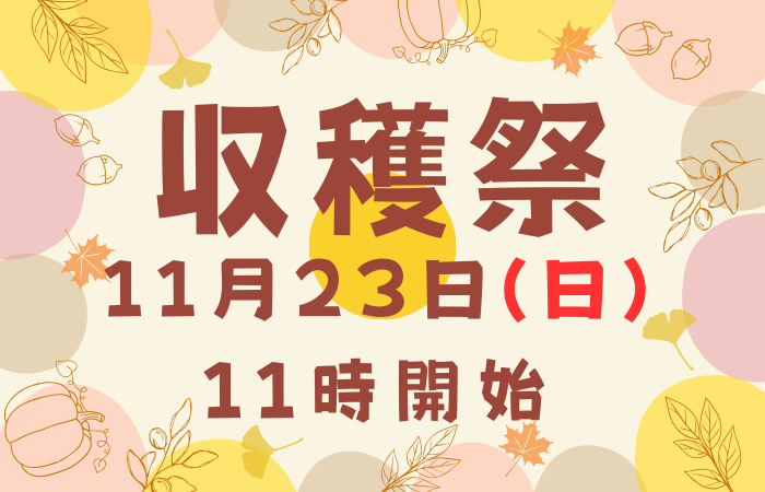 2025.10.24 収穫祭について 今年の収穫祭は 11月23日(日)11時より開催いたします。 例年より遅い時間の開始となります。ご注意ください。 ビンゴ大会は13時の開始です。 また、直売所は11月22日(土)より25日まで臨時休業となります。